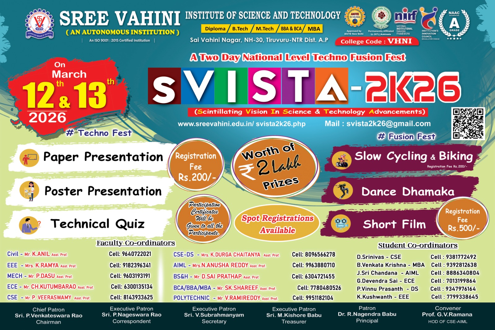 SVISTA–2K26 aims to provide a dynamic platform for students to showcase their technical expertise, creativity, and innovation.